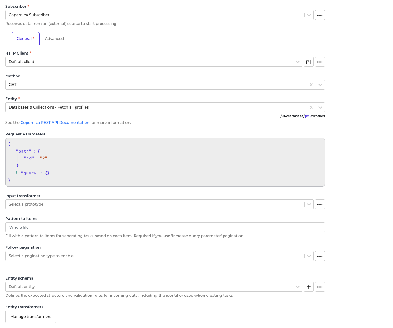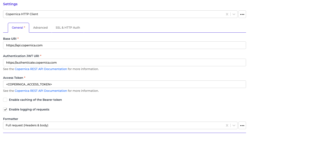 The HTTP Client configuration you will use to access Copernica.