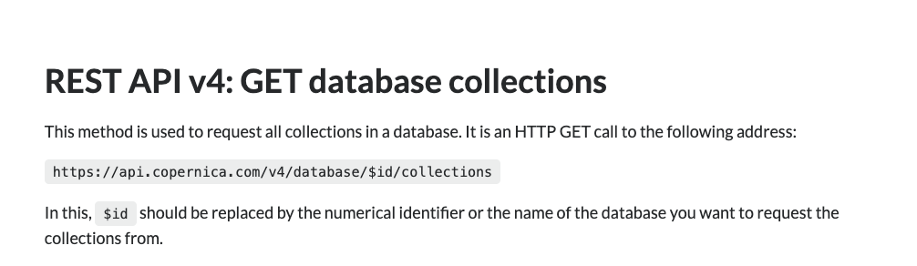 Alumio will then make a request to Copernica with the URL https://api.copernica.com/v4/database/{{id}}/collections