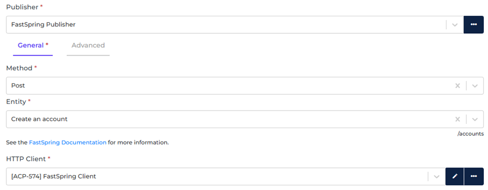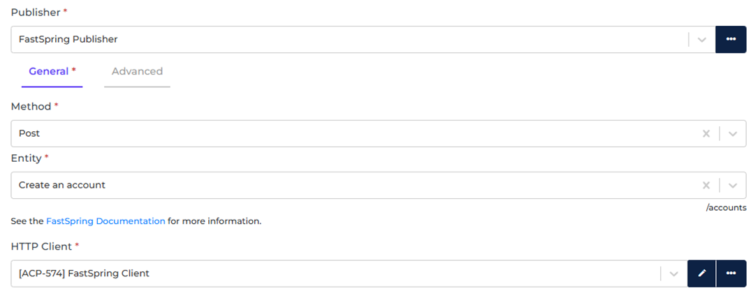 - Select the FastSpring HTTP Client to use.