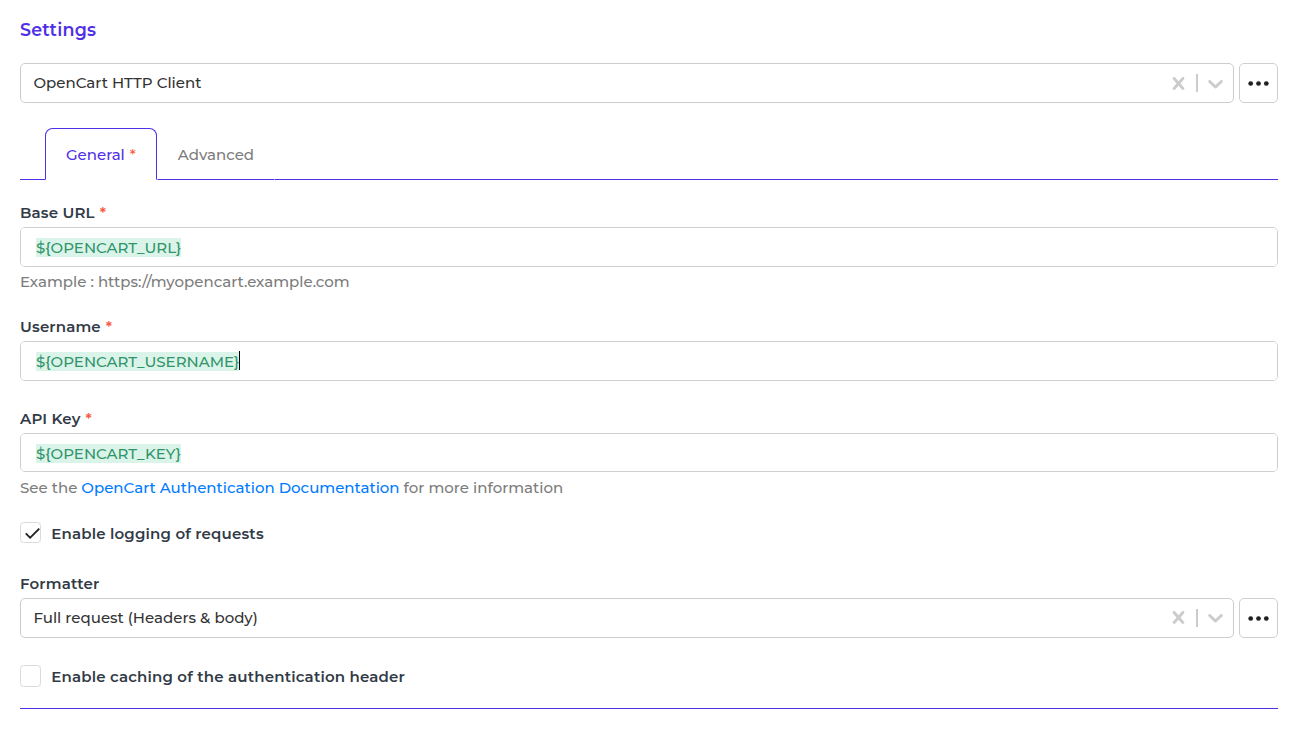 - You can optionally add a transformer to transform the request parameters into something you will request from OpenCart.