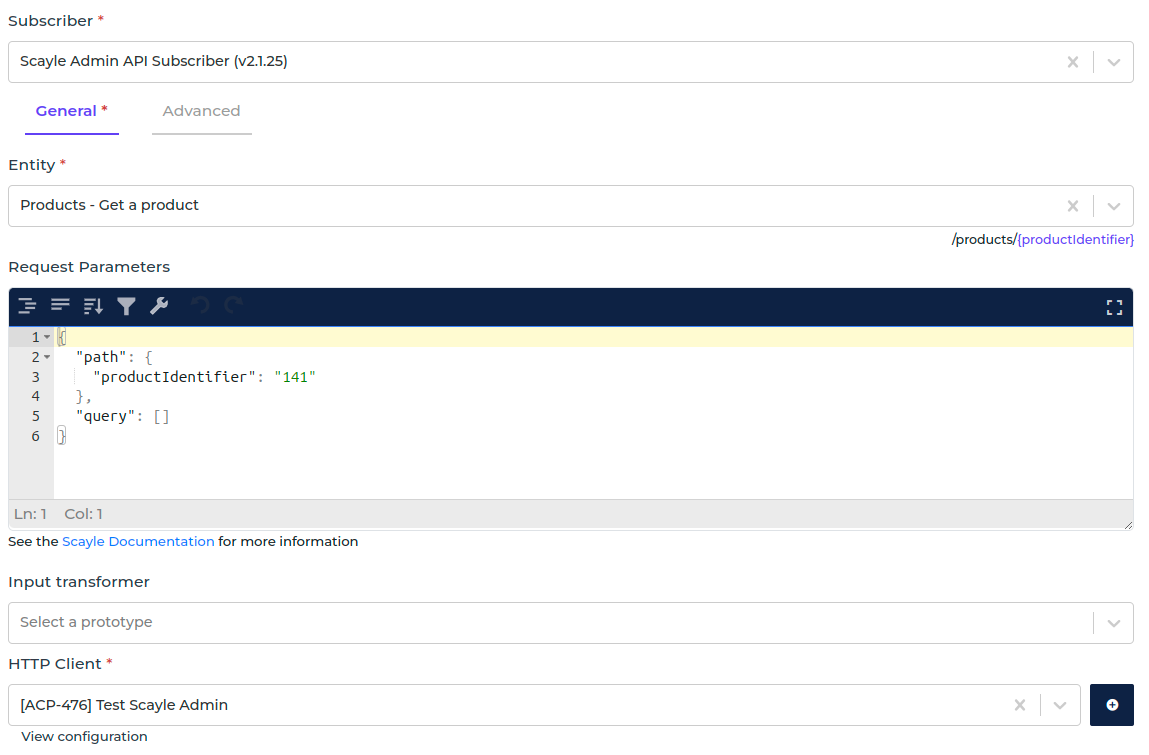 - You can optionally add a transformer to transform the request parameters into something you will request from Scayle.