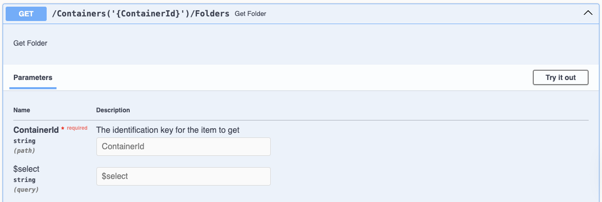 - Path is the path parameter of the URL. For example the {ContainerId}.