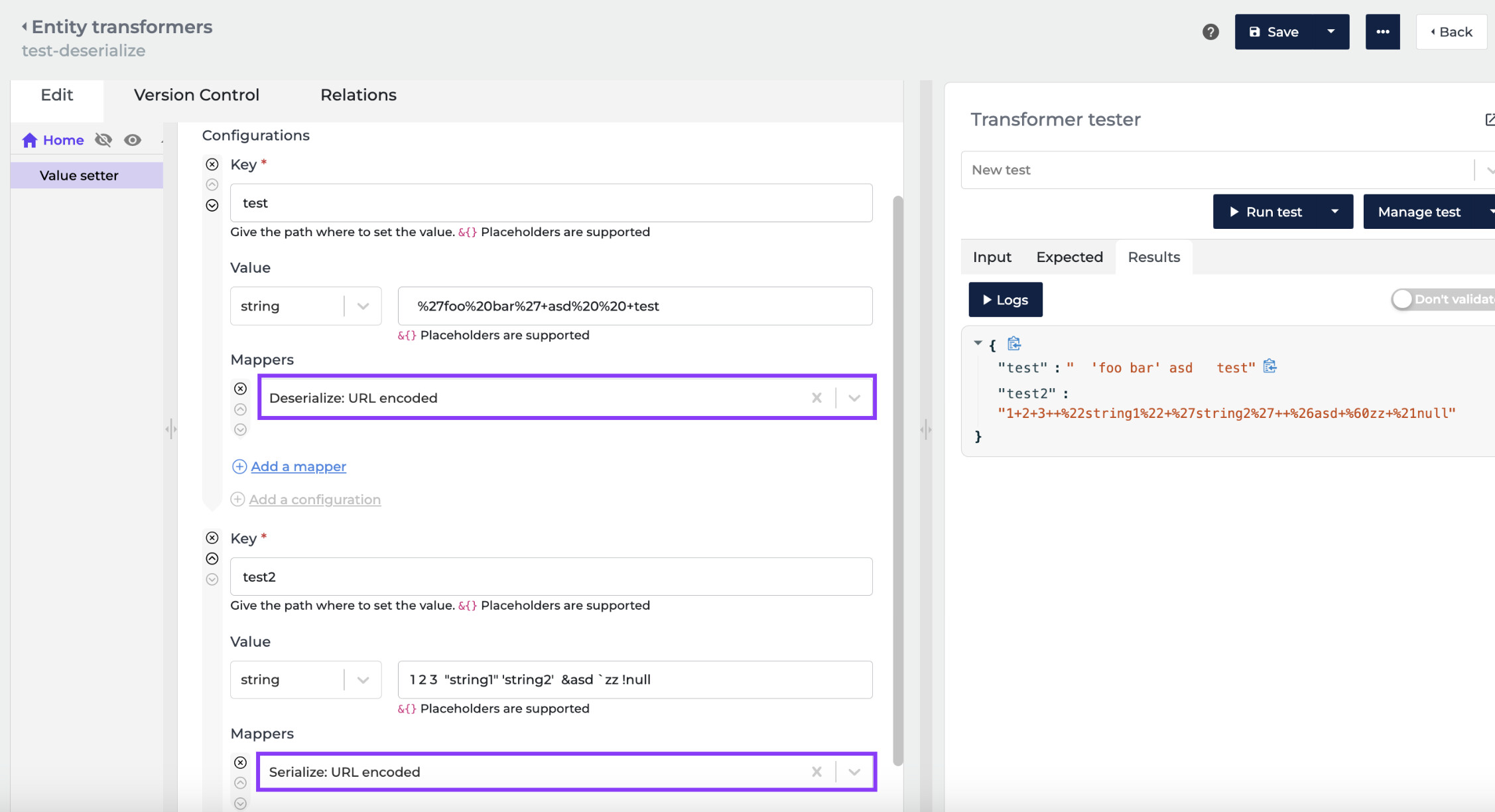 [NEW] We’ve improved the URL decoding function in the “Deserialize: URL encoded” mapper and created the “Serialize: URL encoded” mapper to encode a string to a URL encoded string.