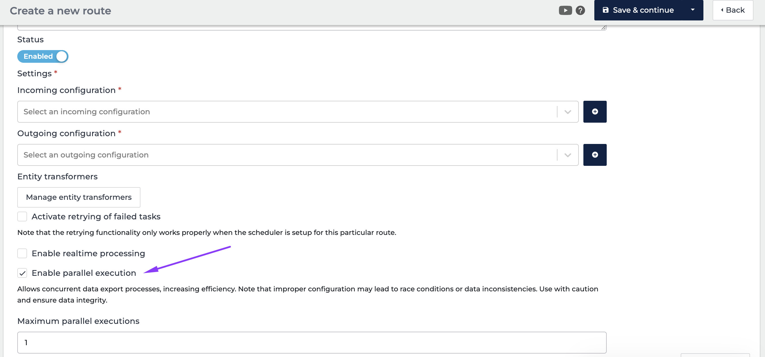 [NEW] We added the option to allow parallel processing of Routes in order to speed up task processing in Alumio.