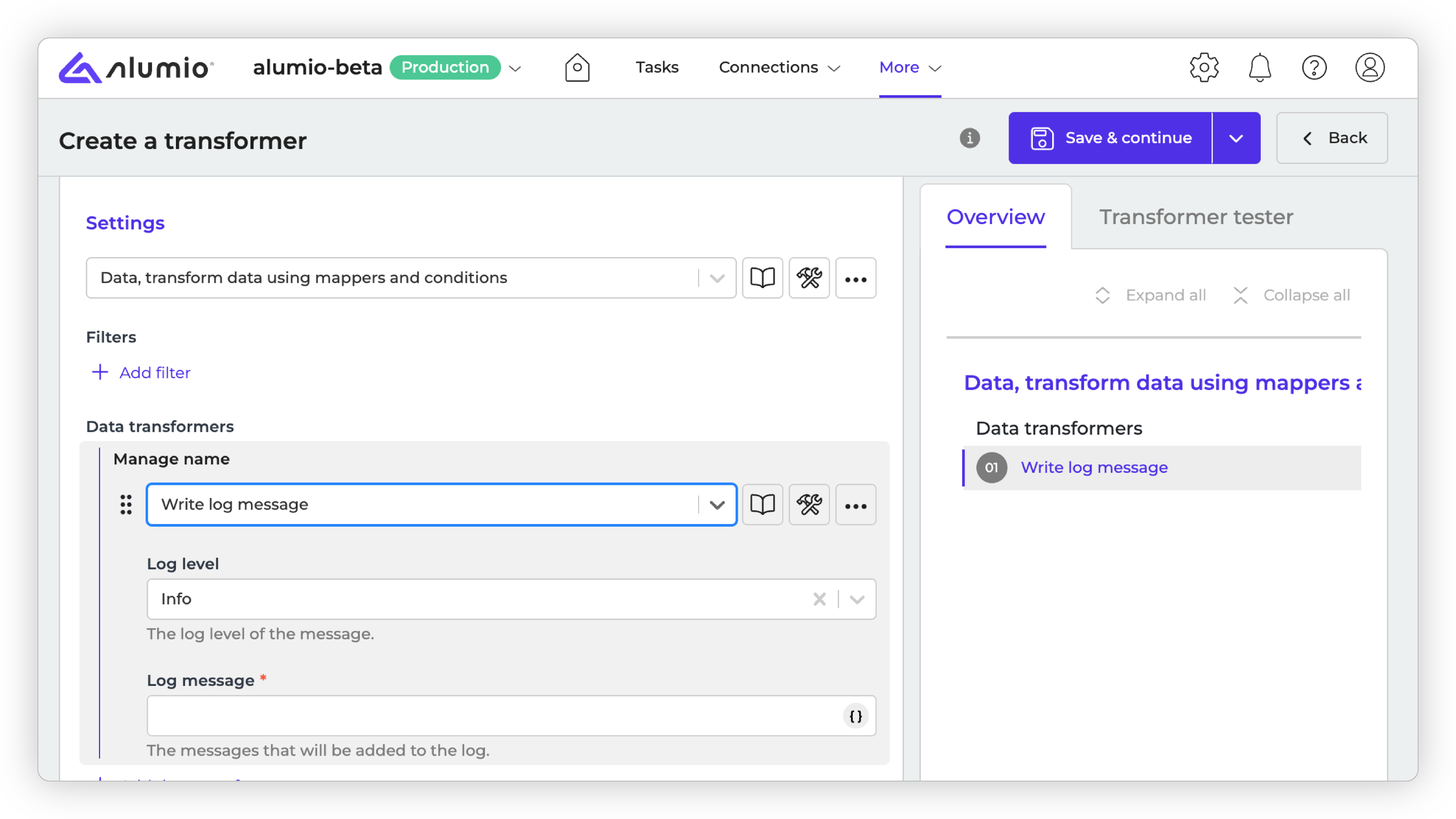 We’ve added a new data Transformer that allows users to write custom log messages with placeholders, log levels, and automatic truncation to simplify integration debugging.