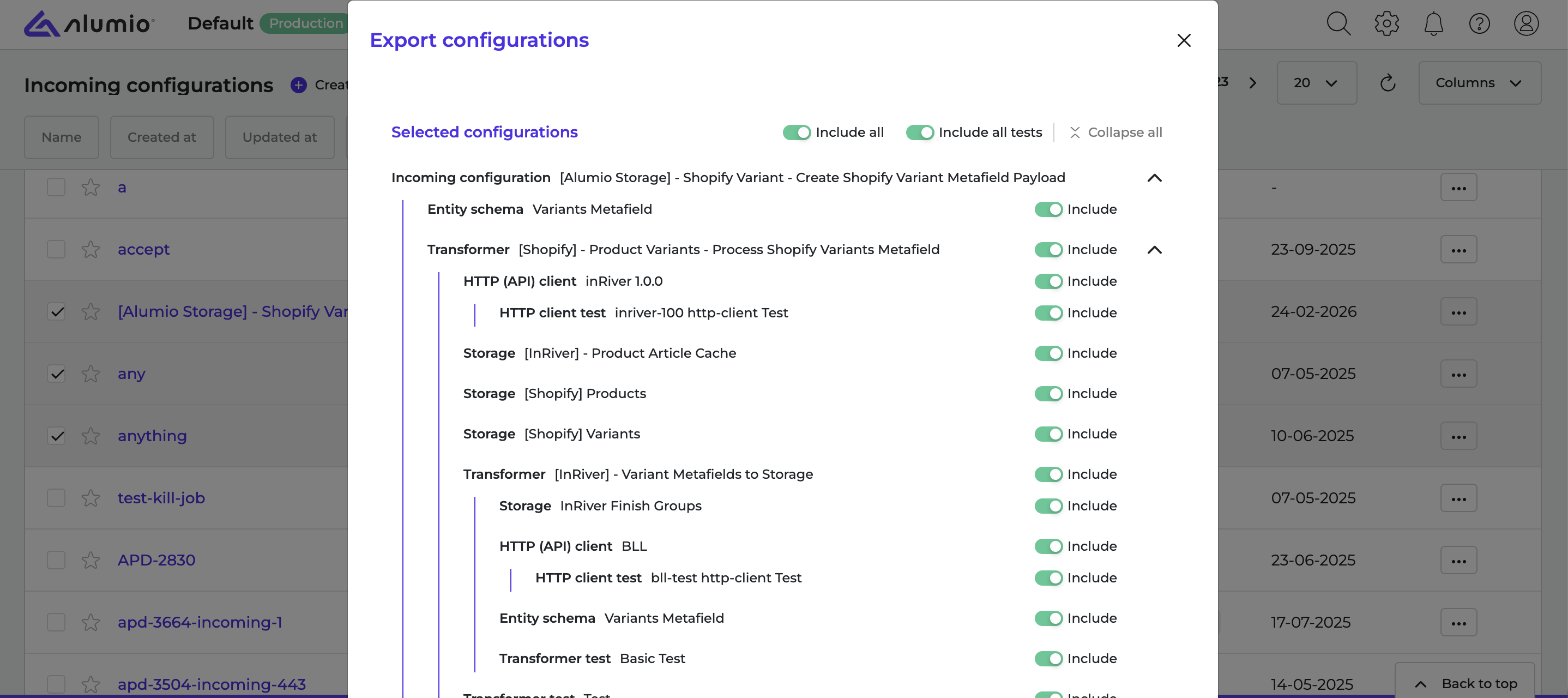 - Exporting all configurations from Alumio