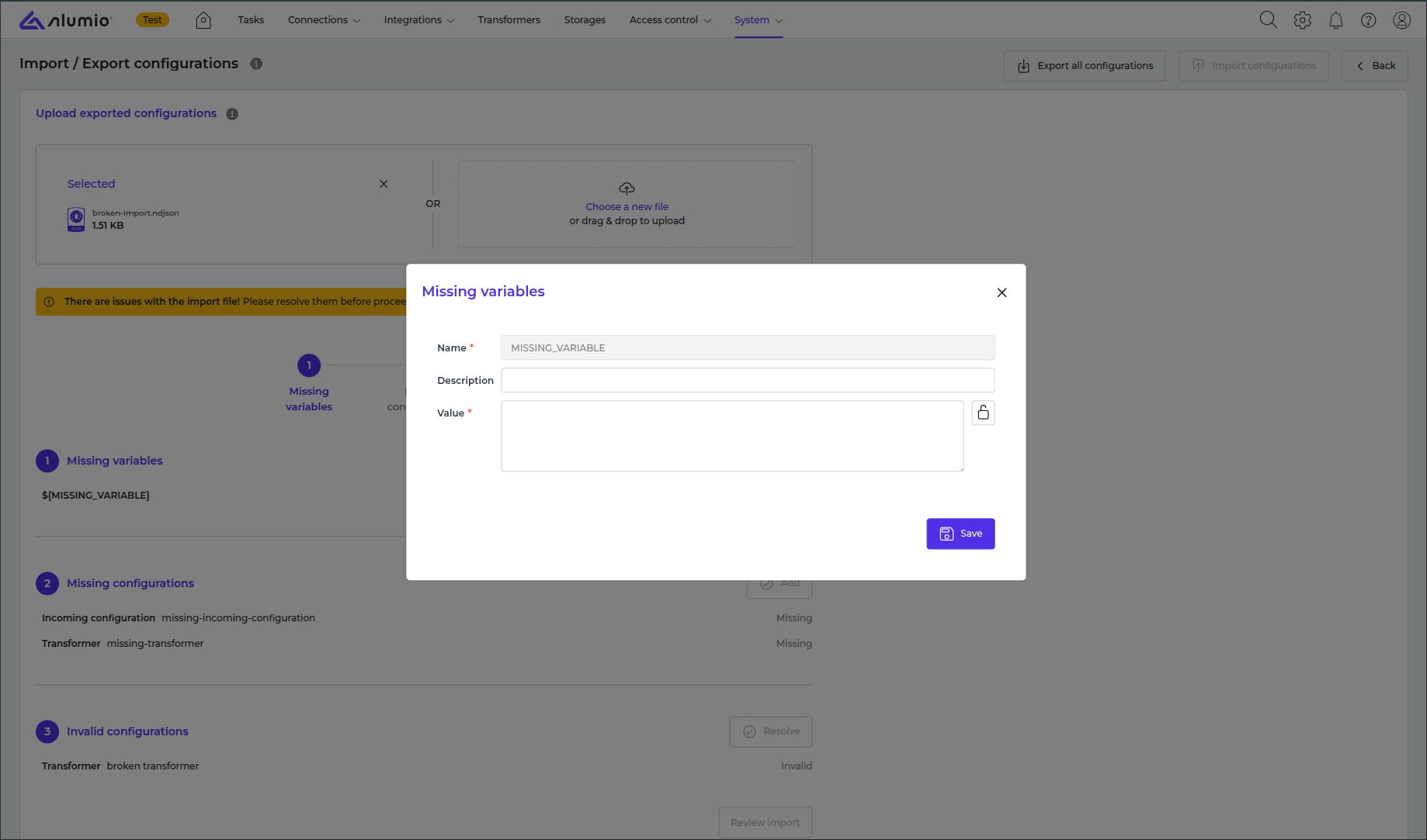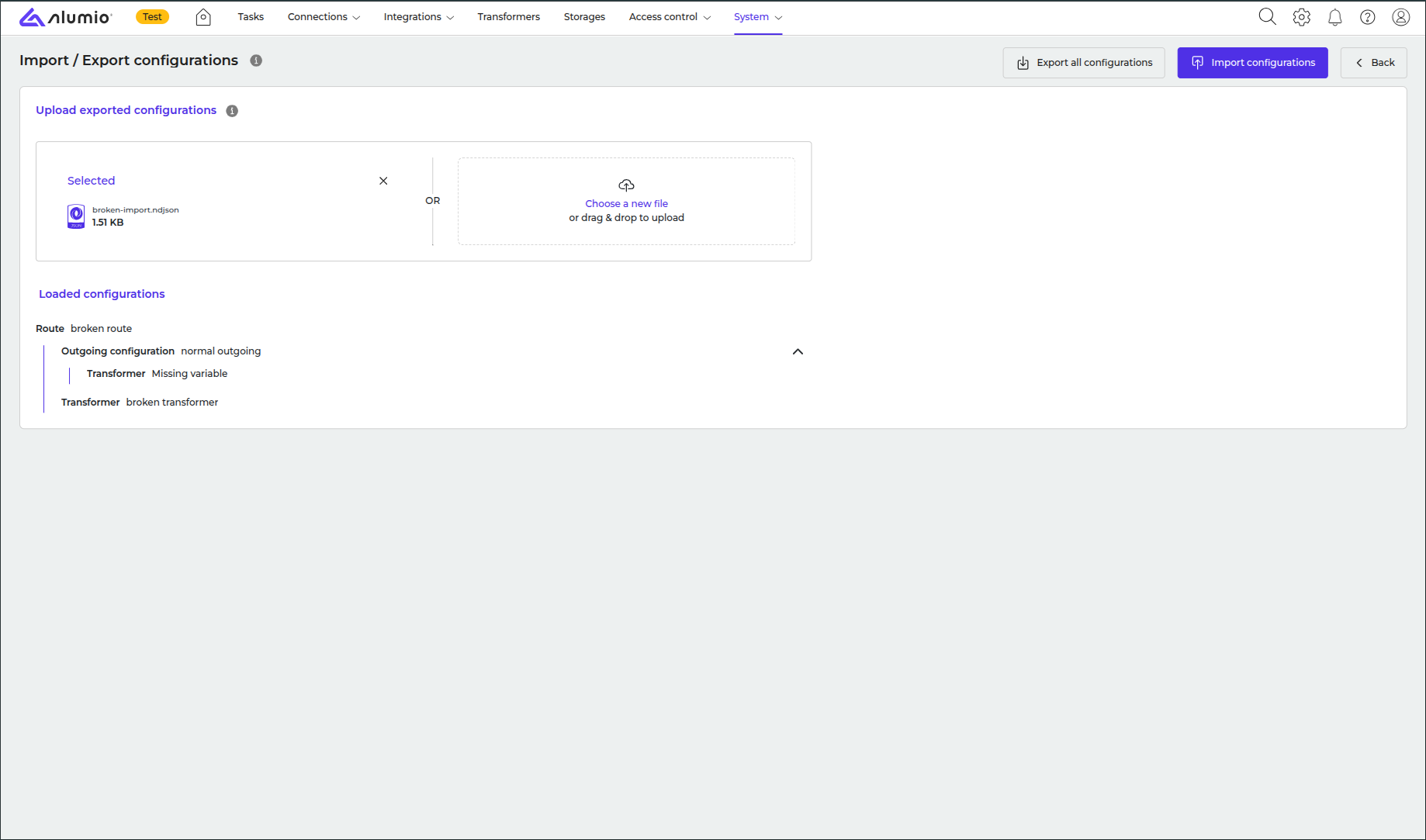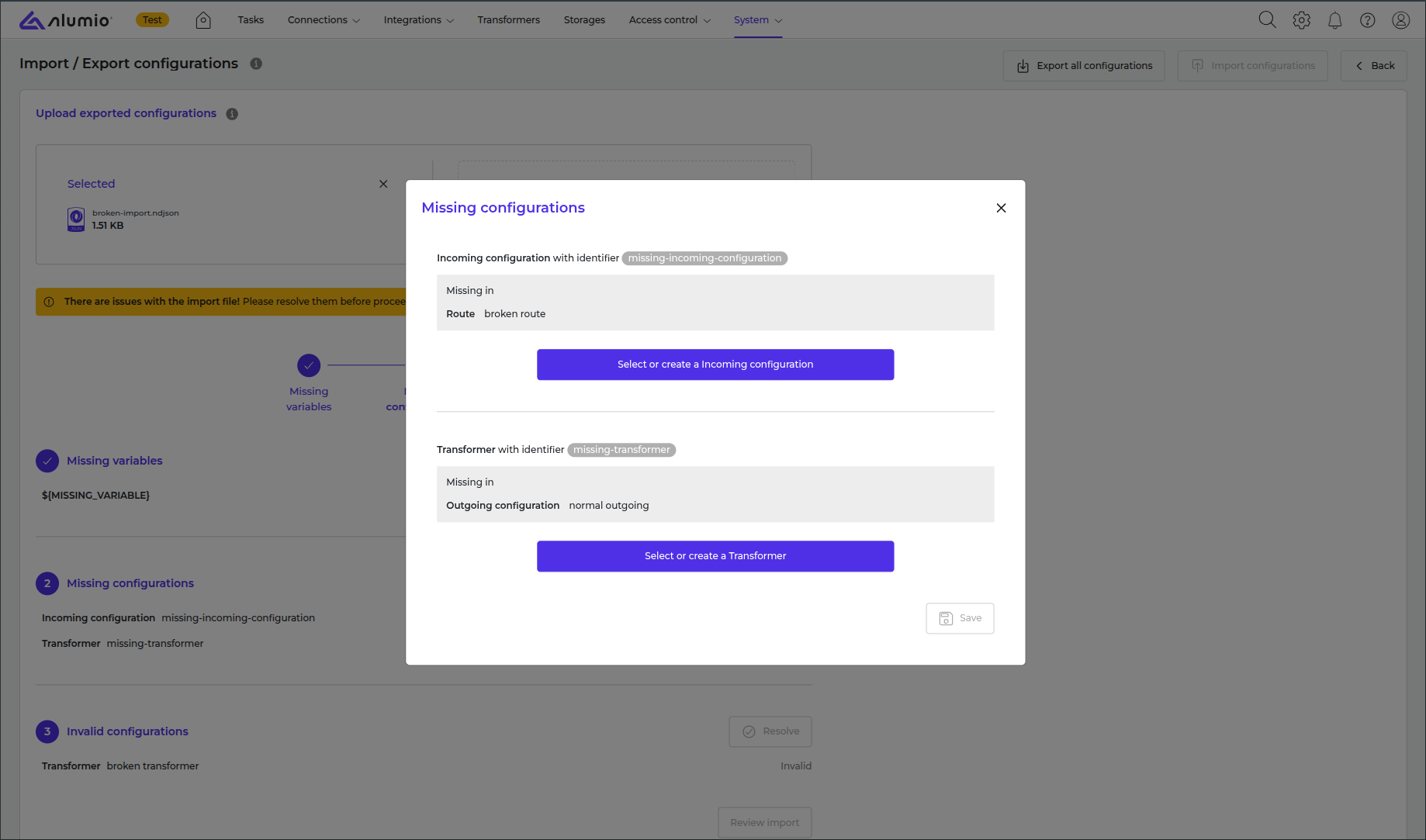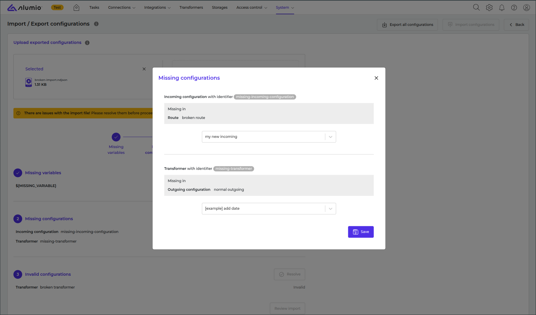 How to import configurations in Alumio