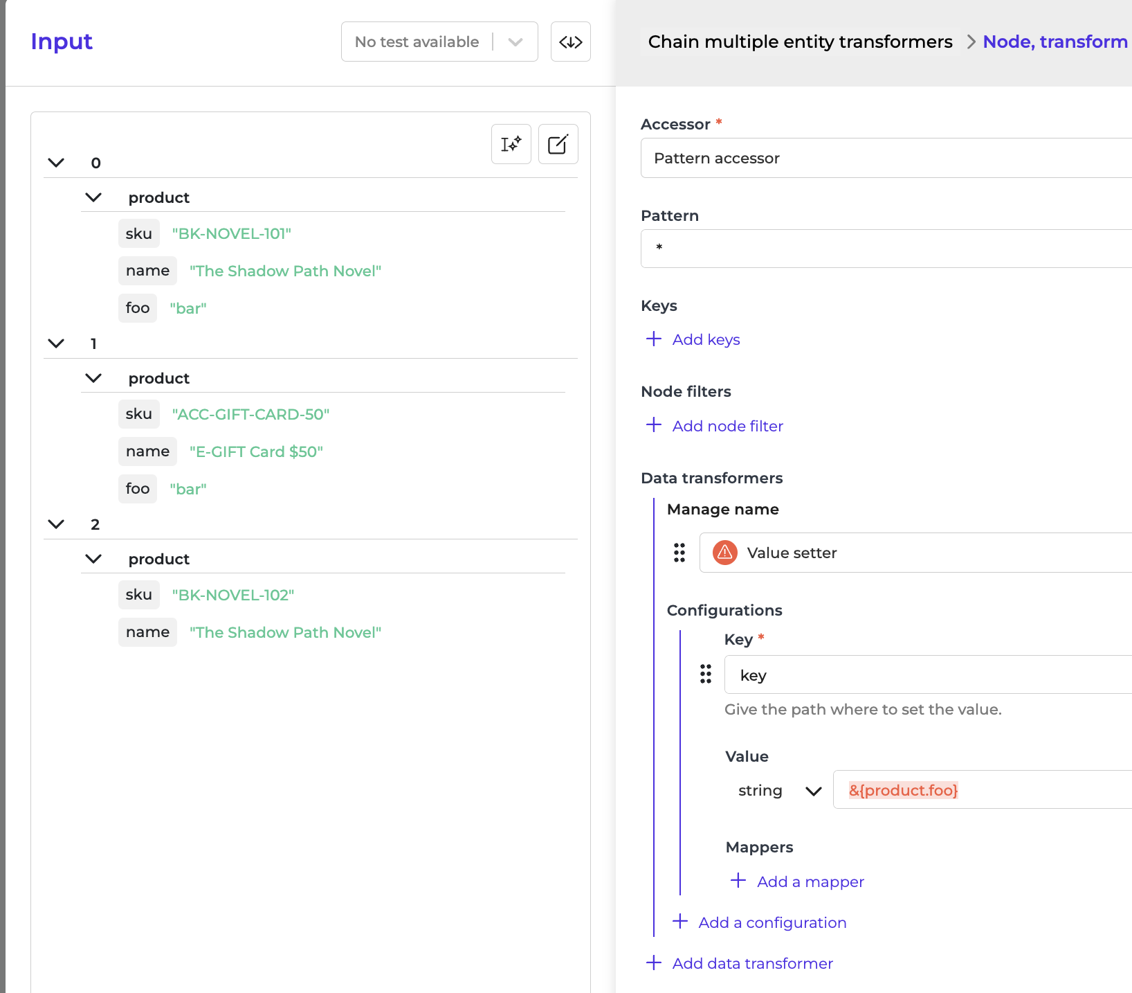 Clear! I just have 1 scenario in which this can still be quite timestealing. If you have a node, transform nodes with 10 data transformers in it to modify the datapoints. It fails in the 5th of those. you still have to manually input the data point you want to test out of the array into all of the 4 previous data transformers in the node,transform nodes to get the right input for your failed transformer. Is there also a trick to go around this?
